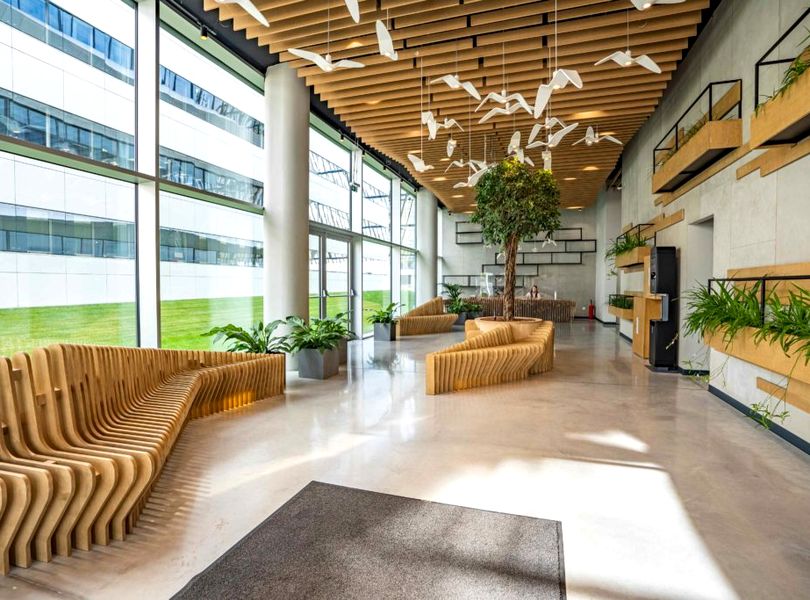 Green Heart was recognized for its ultramodern interior design – the result of complex revitalization – by BigSEE, the industry awards selecting the best projects across 21 countries of the Southeast European region. Together with KDA Architects, GTC’s aimed to create a green oasis framed within futuristic office campus in the bustling business center of Belgrade, while working with already existing real estate assets. The out-of-this-world interior design became the “cherry on top” element of complex revitalization GTC had been carrying out for the last 12 years. Clear, minimalistic, custom-made elements inspired by nature combined with a strong accent of floral compositions inside and outside of the buildings create an illusion of no boundaries between the office space and the outdoor environment. Thus, the tenants and visitors of Green Heart can seamlessly roam around the business campus, without even noticing the “switch” between this green oasis and the work environment.